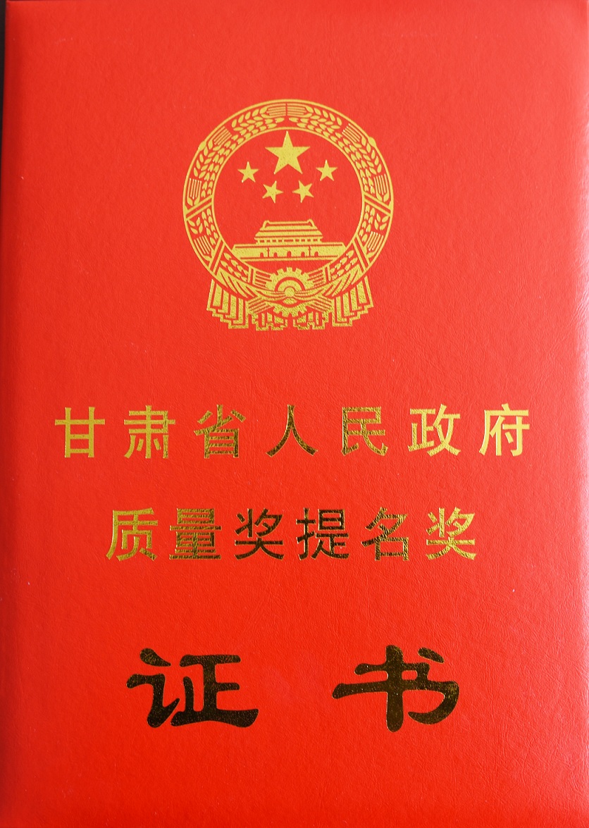 我公司荣获2016年度“甘肃省人民政府质量奖提名奖”