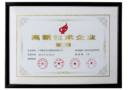 我公司再次获得高新技术企业证书