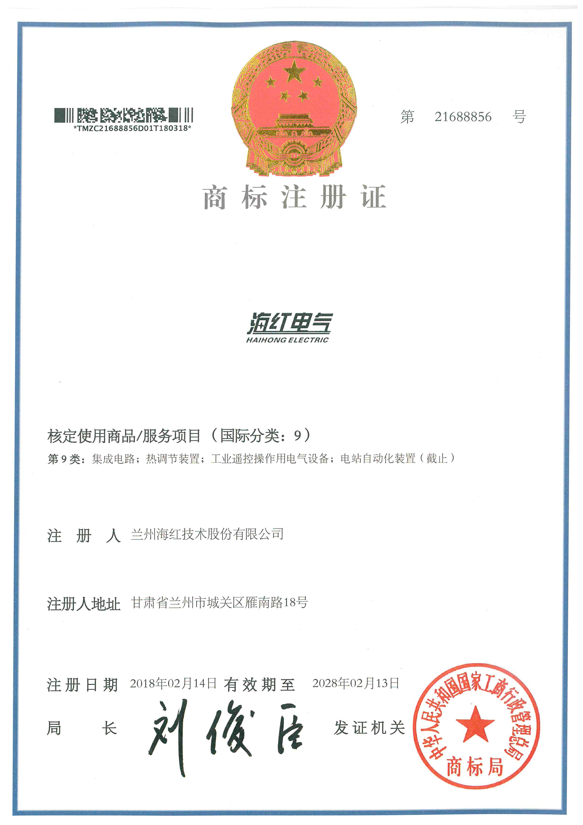 我公司又取得一项商标注册证