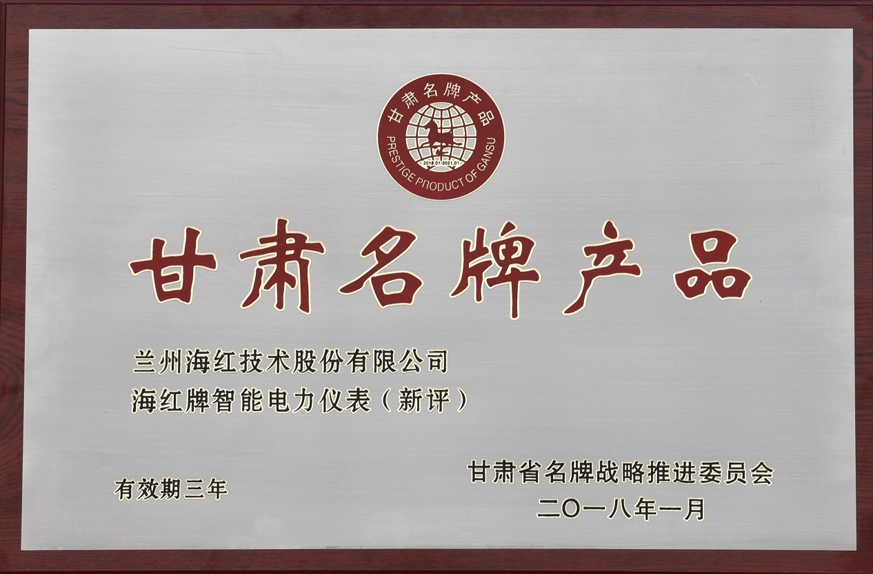 我公司“FUN88乐天使在线登录牌智能电力仪表”产品被甘肃省人民政府评定为2017年“甘肃名牌产品”