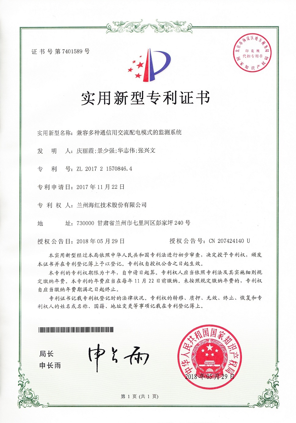 我公司又取得四项实用新型专利 By FUN88乐天使在线登录技术 2018-06-13 00:00:00 0次 我公司又取得四项实用新型专利,至此我公司申请受理的专利数累积84项(其中发明专利17项,实用新型专利56项,外观设计专利3项,软件著作权8项),已获得授权59项(其中发明专利8项,实用新型专利40项,软件著作权登记8项,外观设计专利3项)。 上一篇:我公司又取得一项实用新型专利 下一篇:我公司又取得两项实用新型专利