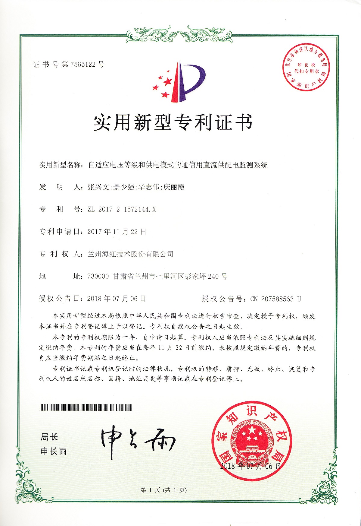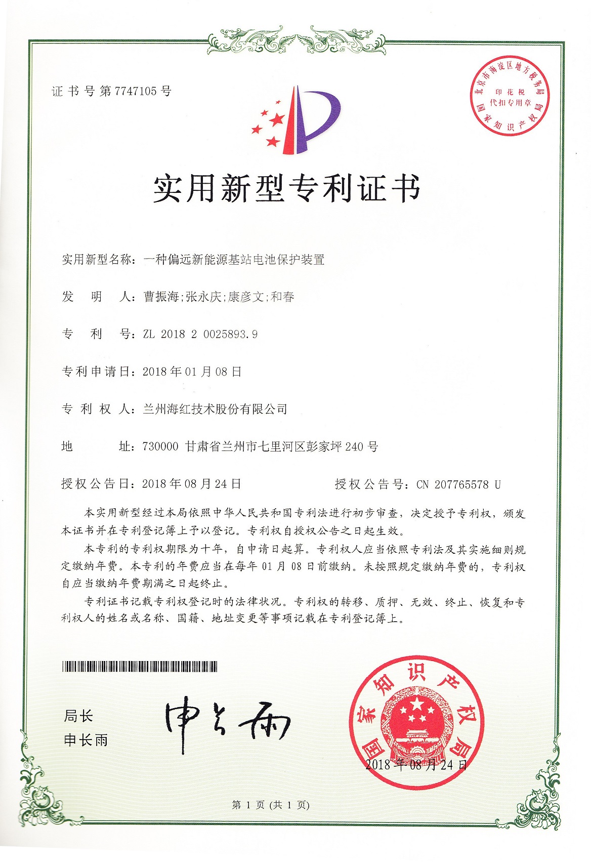 我公司又取得三项实用新型专利 By FUN88乐天使在线登录技术 2018-09-18 00:00:00 0次 我公司又取得三项实用新型专利,至此我公司申请受理的专利数累积84项(其中发明专利17项,实用新型专利56项,外观设计专利3项,软件著作权8项),已获得授权64项(其中发明专利8项,实用新型专利45项,软件著作权登记8项,外观设计专利3项)。 上一篇:我公司四个产品取得国家新闻出版广电总局广播电视设备器材入网认定证书 下一篇:我司与兰州交通大学新能源与动力工程学院共建“新能源汽车充电技术联合研究中心”暨设立“FUN88乐天使在线登录奖学金”