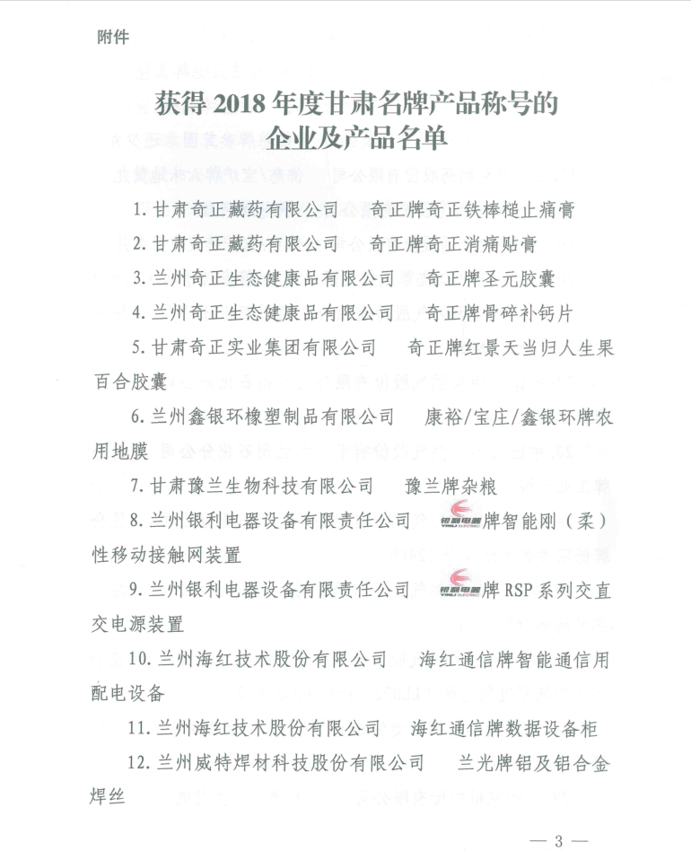 我公司“FUN88乐天使在线登录通信”牌智能通信用配电设备和数据设备柜两个产品获得2018年度“甘肃名牌产品”称号