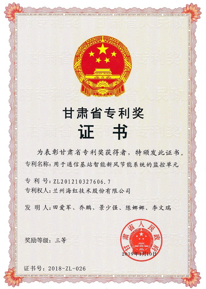我公司“用于通信基站智能新风节能系统的监控单元”发明专利荣获甘肃省专利奖 By FUN88乐天使在线登录技术 2019-03-14 11:15:39 0次 上一篇:我公司成功中标“中国电信交/直流电源列柜集中采购项目” 下一篇:我公司再取得二项商标注册证