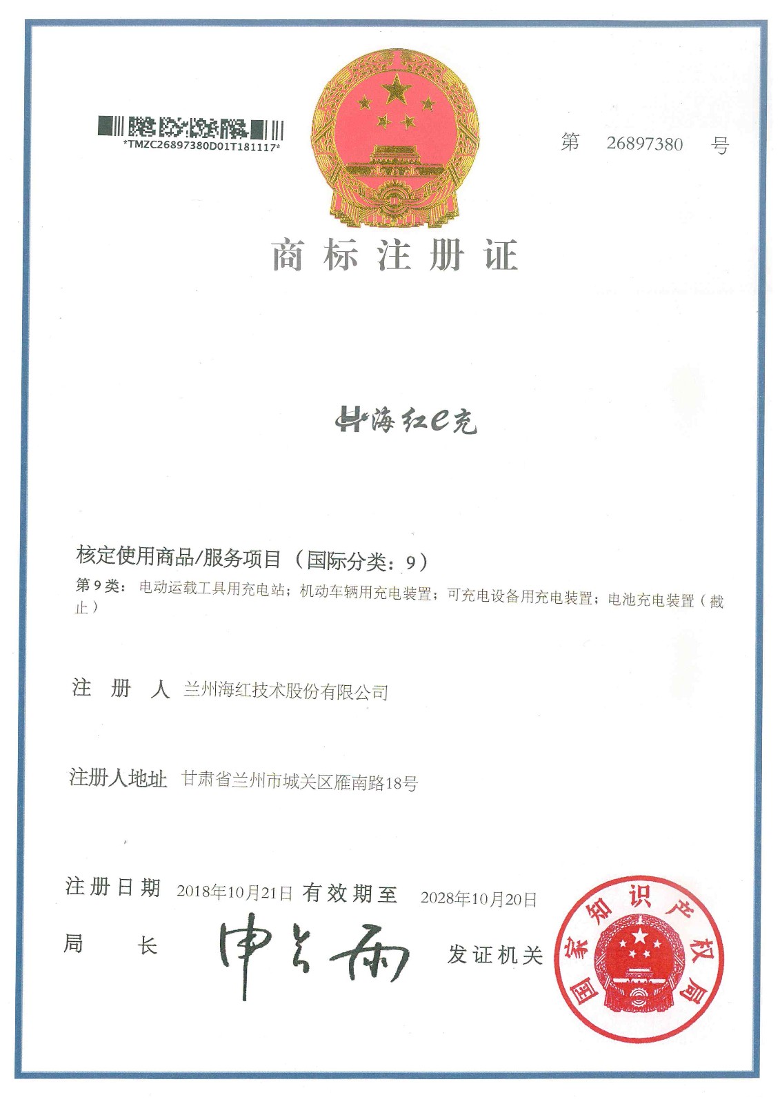 我公司再取得二项商标注册证 By FUN88乐天使在线登录技术 2019-03-14 11:24:37 0次 我公司再取得2项由国家知识产权局签发的商标注册证,至此我公司已取得7项商标注册证。 上一篇:我公司“用于通信基站智能新风节能系统的监控单元”发明专利荣获甘肃省专利奖 下一篇:我公司参与起草的行业标准《通信电源和机房环境节能技术指南 第2部分:应用条件》已正式出版