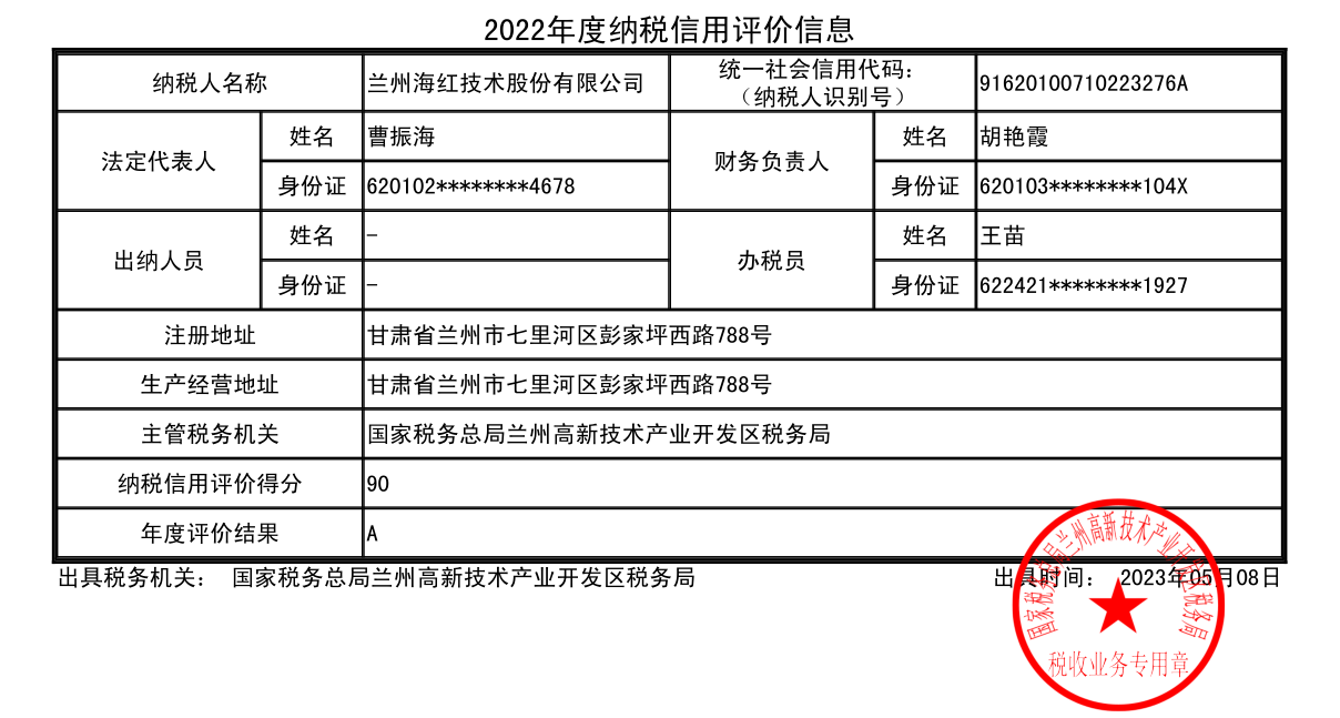 我司被国家税务总局甘肃省税务局评价为“2022年度纳税信用A级纳税人” By FUN88乐天使在线登录技术 2023-05-09 11:42:29 0次 我司被国家税务总局甘肃省税务局评价为“2022年度纳税信用A级纳税人”。至此,我司已连续九年被评价为“纳税信用A级纳税人”,这是税务机关对公司坚持诚信经营、依法纳税的充分肯定,有助于公司在银行信贷、经营投标等方面维护良好的信誉和形象,有利于促进公司可持续发展。 上一篇:兰州市政府课题调研组莅临我司进行专题调研 下一篇:我司通过2023年甘肃省“专精特新”中小企业复核