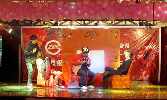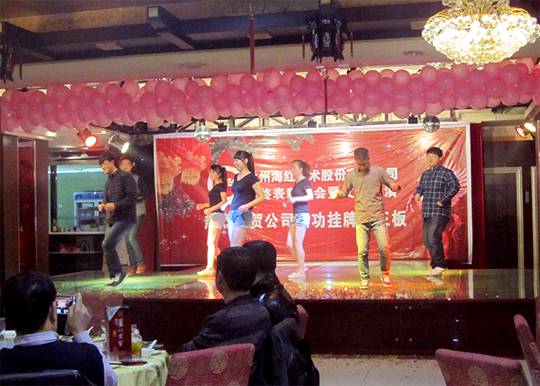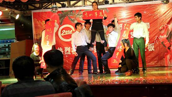公司2014新春团拜会 By FUN88乐天使在线登录技术 2019-03-13 17:40:21 0次 董事长致新年贺词 公司领导观看文艺汇演 舞蹈《向前冲》 舞蹈《舞蹈串烧》 歌曲《扎西德勒》 手风琴独奏《绿岛小夜曲》 舞蹈《康定情歌》 秦腔《杀庙》 独舞《阳光下的哈达》 小合唱《大手拉小手》 舞蹈《咏春》 互动游戏《踩气球》 舞蹈《兔子舞》 相声《三句半》 歌曲《你》 舞蹈《吉祥瑶》 小品《公交车》 生产中心总经理刘海青临时献唱《爱拼才会赢》 董事长即兴演唱《爱拼才会赢》 大合唱《壮志在我心》 公司领导与全体参演人员合影留念 上一篇:公司举行庆“三.八“包饺子比赛 下一篇:岷县地震 心系灾区